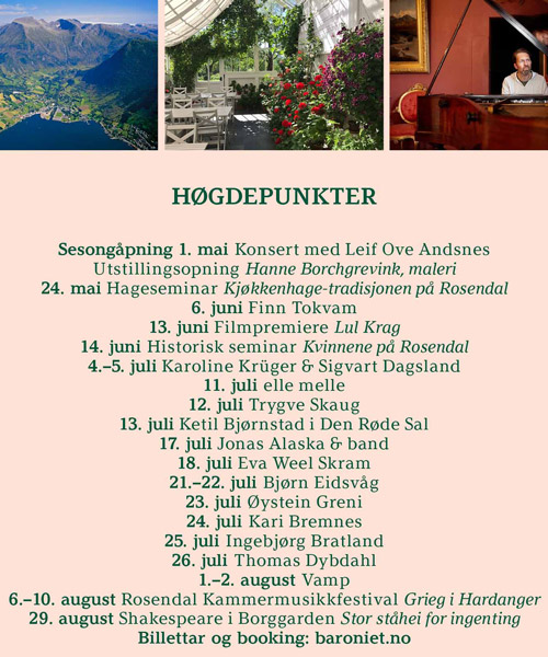 Baroniet har no gjort kjent kulturprogrammet for 2013. Som vanleg er det eit stjernespekka program! Sjå her
